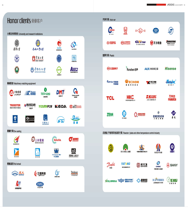 Saat ini, Aode Machinery Co, Ltd terus menjunjung tinggi tujuan standar desain internasional dan produk-produk berkualitas tinggi, menerapkan diri untuk menyediakan produk standar tinggi dan layanan pengasuh keseluruhan perjalanan. Produk kami banyak diterapkan dalam plastik molding injeksi, piring panduan cahaya, konektor, teknik kimia, pengecoran kompresi, ceret reaksi, ban karet, kalender, bahan sepatu, percetakan dan pencelupan, pengeringan dan banburying dan tec. Dan banyak dijual ke Jepang, Amerika, Italia, Brasil, Asia Tenggara, Afrika dan lain-lain pengakuan merek dari pasar adalah cukup untuk membuktikan bahwa suhu kami. sistem kontrol dapat menggantikan produk sejenis yang diimpor. Belows adalah klien kehormatan kami.